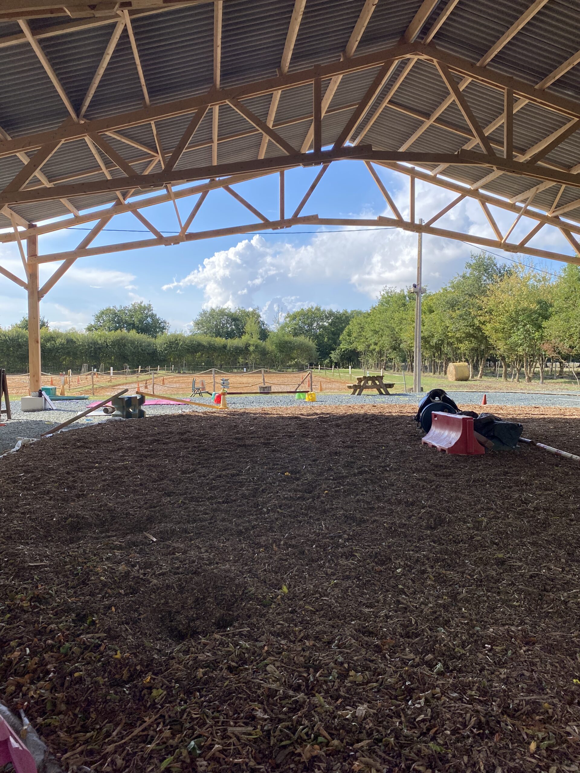 La ferme possède un rond de longe couvert dédié à la médiation permettant, entre autres de maintenir les séances lorsque la météo est moins clémente.